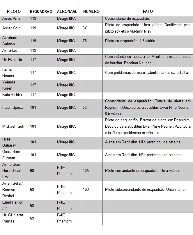 Os israelenses não eram apenas habilidosos, mas também sortudos: um piloto russo conseguiu enquadrar a cauda de um Phantom e acertá-lo com um míssil infravermelho Atol AA-2, mas ele não explodiu e a aeronave voltou a base com danos mínimos.