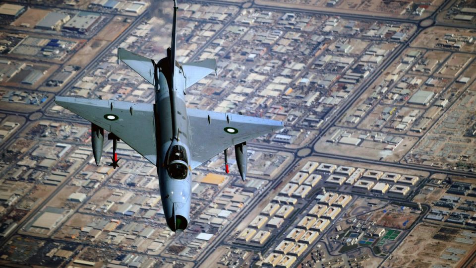 Acima um Shenyang F-7M Airguard da Força Aérea do Paquistão; a versão chinesa do MiG-21 foi vendida para 15 países.