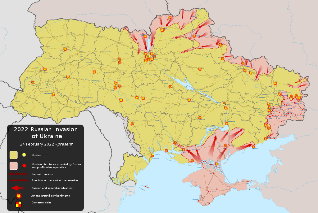 No dia 24 de fevereiro, as forças russas cruzaram a fronteira e começaram a avançar em direção a Kharkiv, encontrando resistência ucraniana. Os russos também dispararam barragens de artilharia na cidade, matando alguns civis, segundo fontes ucranianas.