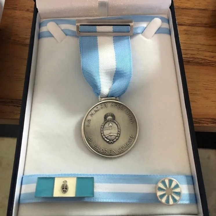 Medalha ao Valor em Combate, uma das maiores condecorações da Argentina, concedida aos veteranos e instituições que participaram da Guerra das Malvinas. (Reprodução internet)