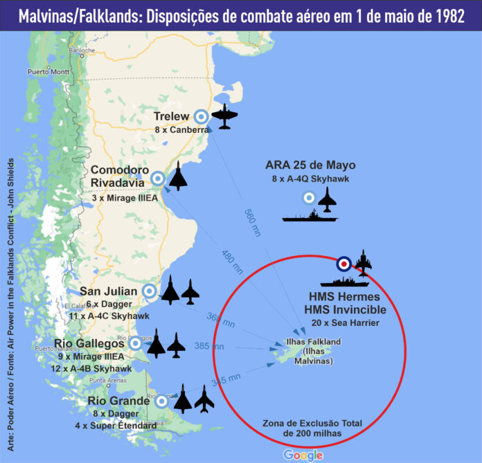 O saldo do primeiro dia de combate não foi bom para a Força Aérea Argentina, com quatro aeronaves abatidas e três pilotos e tripulantes mortas. Mesmo assim os pilotos argentinos continuariam lutando com muita bravura e honra contra um poderoso inimigo por mais 43 dias até o fim da guerra, no dia 14 de junho.