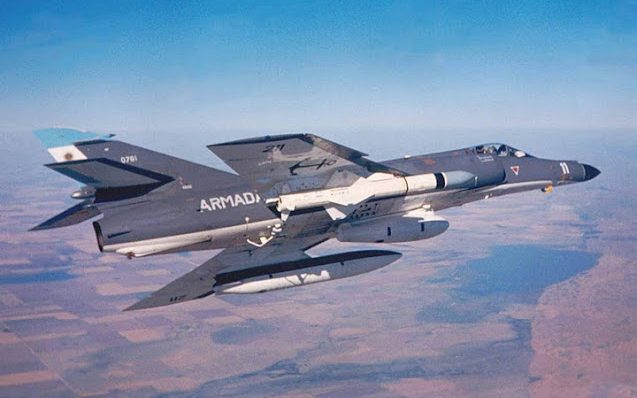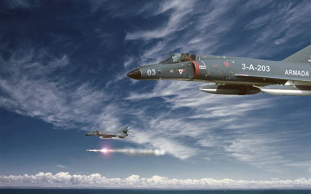 FOTO DE CAPA: Reprodução do momento em que os Dassault Super Étendard do COAN lançam seus mísseis antinavio Exocet contra o HMS Sheffield. (Fonte: Blog Poder Naval)
