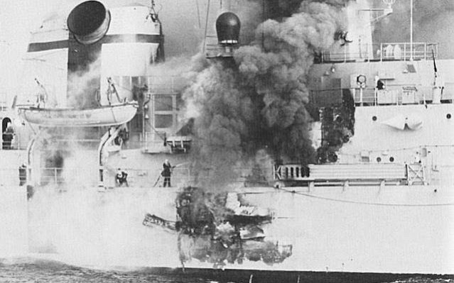 O HMS Sheffield (D80), um destroier de mísseis guiados da Marinha Real Inglesa (Royal Navy) comissionado em 1975, foi atacado por mísseis Aerospatiale (hoje MBDA) AM 39 Exocet, lançados pelos Dassault Super Étendard da Aviação Naval Argentina (COAN) no dia 4 de maio de 1982, durante a Guerra das Malvinas. O ataque vitimou 20 membros da tripulação e deixou vários feridos. Dias depois, no dia 10 de maio, ao ser rebocado, o Sheffield acabou afundando. O ataque argentino entrou para a História por ser o primeiro a usar mísseis lançados por aviões contra navios. O ataque tornou famoso o míssil antinavio de origem francesa Exocet. O ataque também foi o batismo de fogo do COAN.