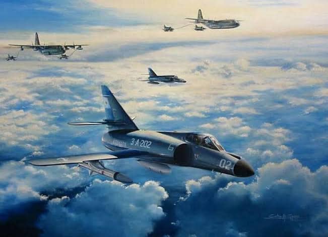 Dois SUE (Super Etèndard) e quatro A-4C Skyhawk seriam usadas no único ataque conjunto da aviação argentina na guerra; cada Skyhawk usaria 3 bombas de 500 libras (~250 kg), e um dos SE levaria o último Exocet.