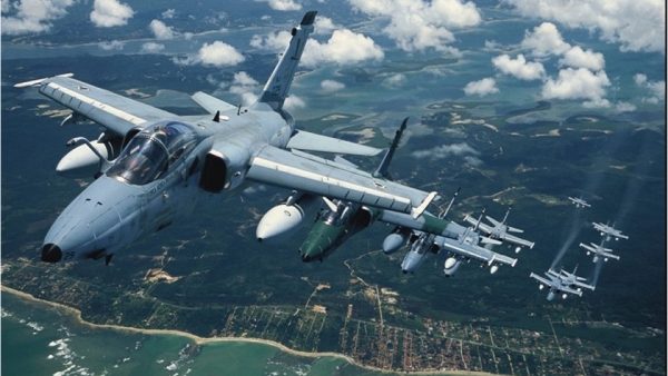 IMAGEM DE CAPA: Bons tempos do AMX na FAB (que infelizmente não irão mais voltar); uma esquadrilha de A-1 em voo em algum lugar do litoral brasileiro. (FONTE: Internet)